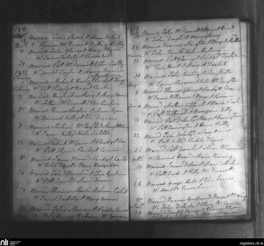 Kiltoghart; County of Leitrim; Diocese of Ardagh. Marriages, Oct. 1851 to Nov. 1852