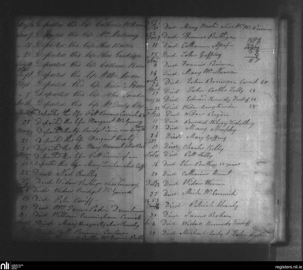 Kiltoghart; County of Leitrim; Diocese of Ardagh. Deaths, May 1850 to Feb. 1853
