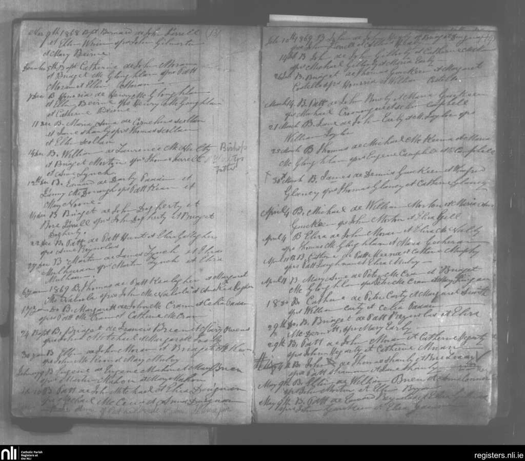 Kiltoghart; County of Leitrim; Diocese of Ardagh. Baptisms, Nov. 1868 to May 1869