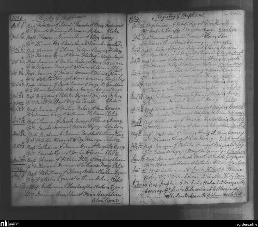 Clonmacnois; County of Offaly; Diocese of Ardagh. Baptisms, Oct. 1853 to July 1854