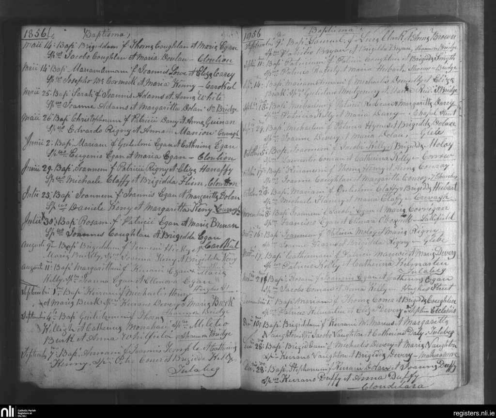 Clonmacnois; County of Offaly; Diocese of Ardagh. Baptisms, May 1856 to Dec. 1856