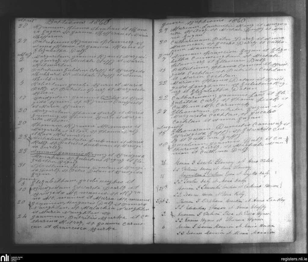 Clonmacnois; County of Offaly; Diocese of Ardagh. Baptisms, Apr. 1860 to Sep. 1860