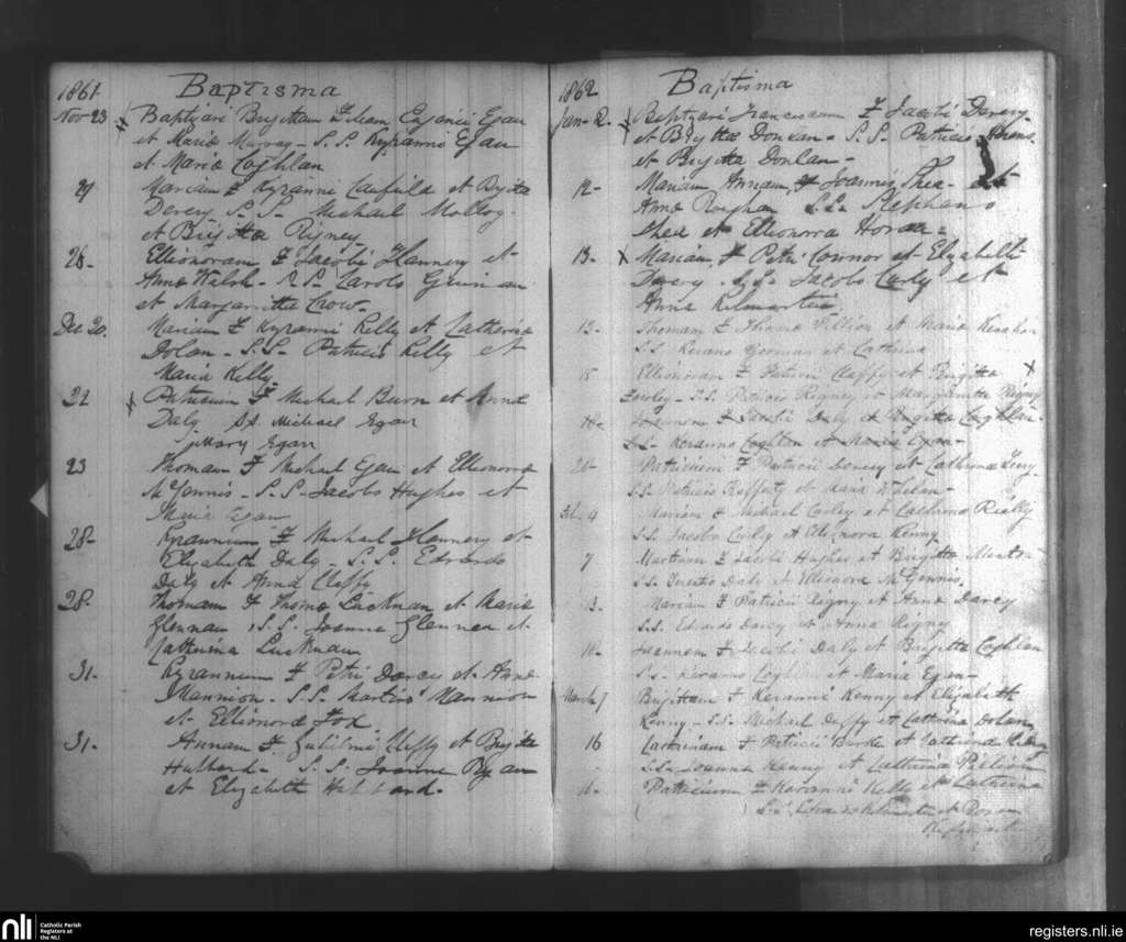 Clonmacnois; County of Offaly; Diocese of Ardagh. Baptisms, Nov. 1861 to Mar. 1862