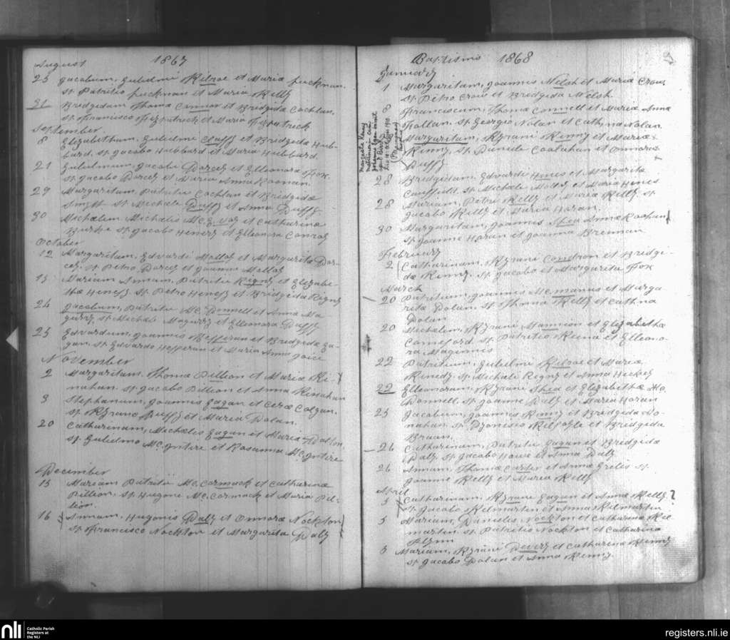 Clonmacnois; County of Offaly; Diocese of Ardagh. Baptisms, Marriages, Aug. 1867 to Oct. 1910