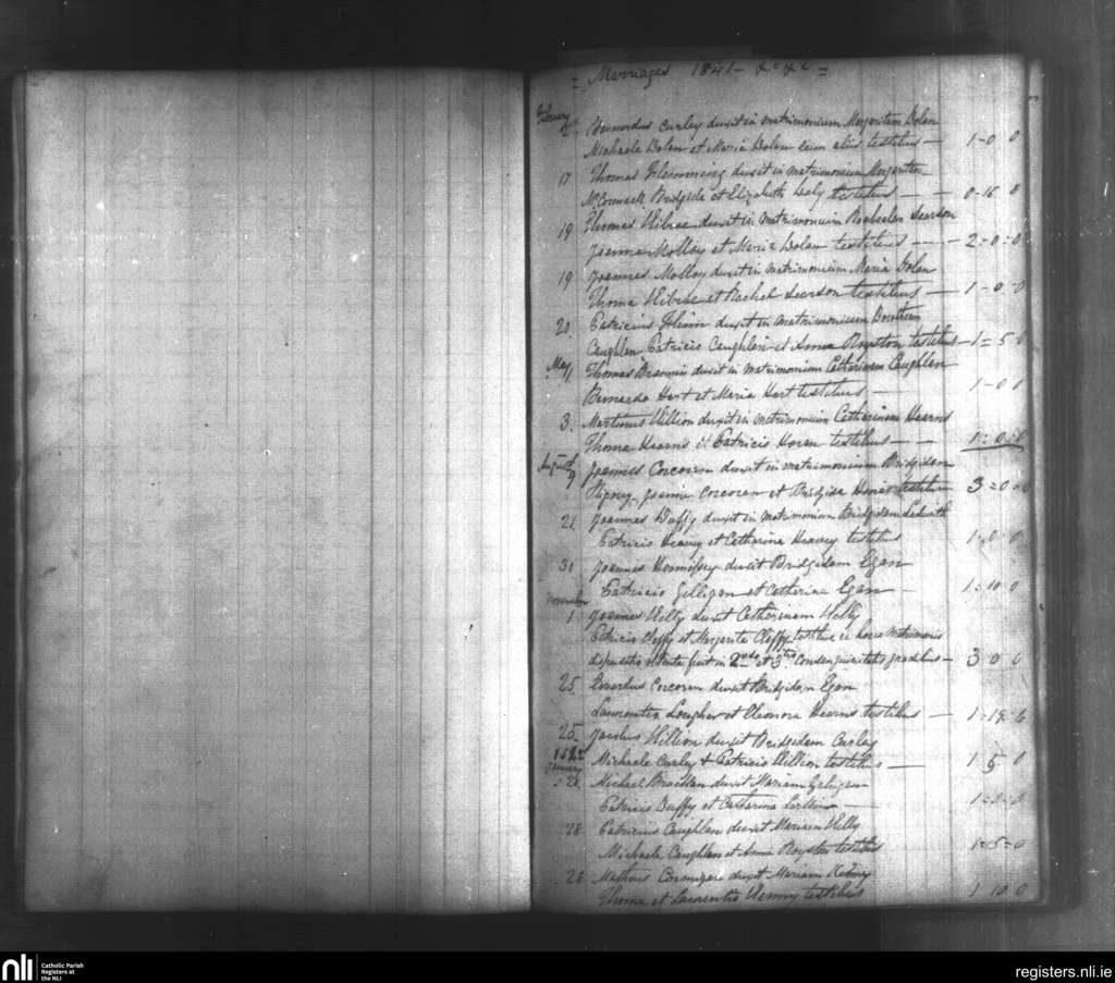 Clonmacnois; County of Offaly; Diocese of Ardagh. Marriages, Feb. 1841 to Jan. 1842