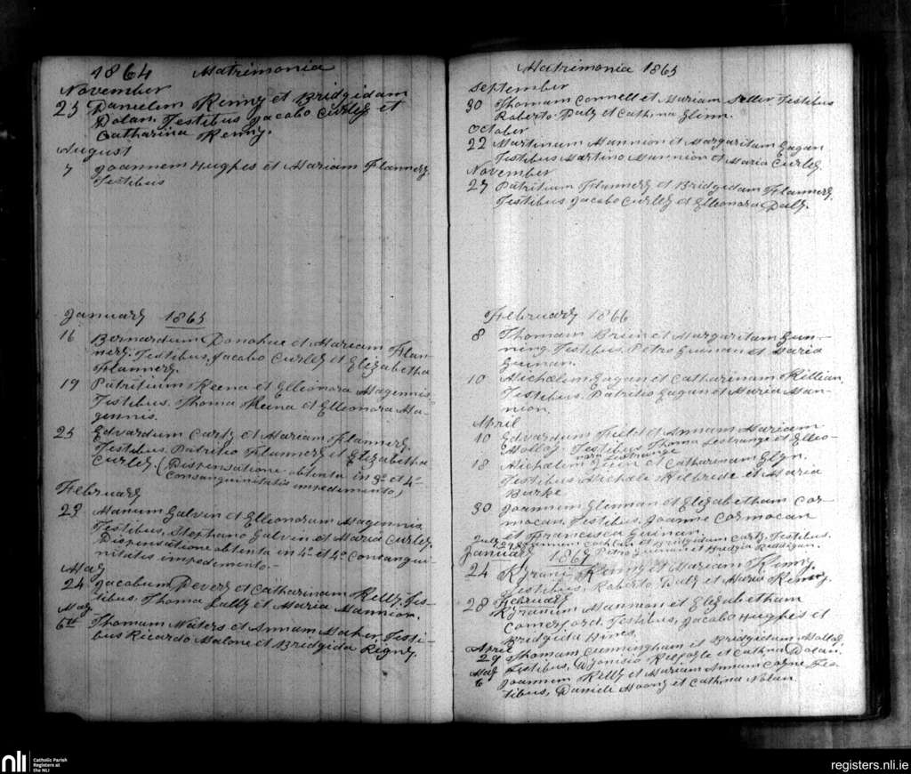 Clonmacnois; County of Offaly; Diocese of Ardagh. Marriages, Aug. 1864 to May 1867