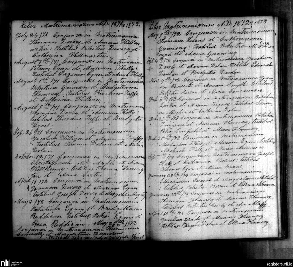 Clonmacnois; County of Offaly; Diocese of Ardagh. Marriages, July 1871 to Apr. 1874