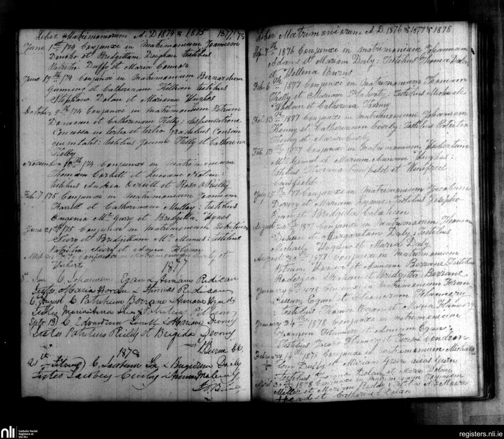 Clonmacnois; County of Offaly; Diocese of Ardagh. Marriages, June 1874 to Apr. 1878