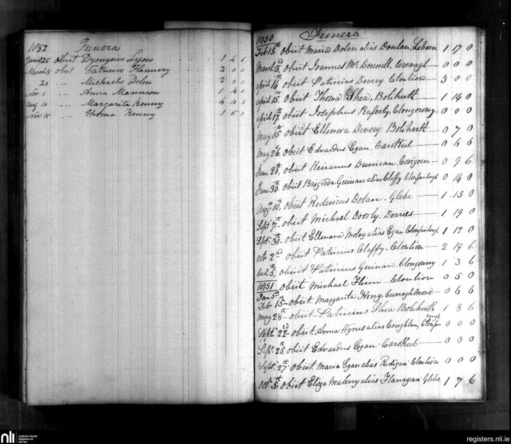 Clonmacnois; County of Offaly; Diocese of Ardagh. Deaths, Feb. 1850 to Nov. 1852