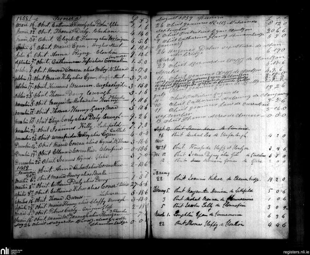 Clonmacnois; County of Offaly; Diocese of Ardagh. Deaths, May 1858 to Mar. 1861