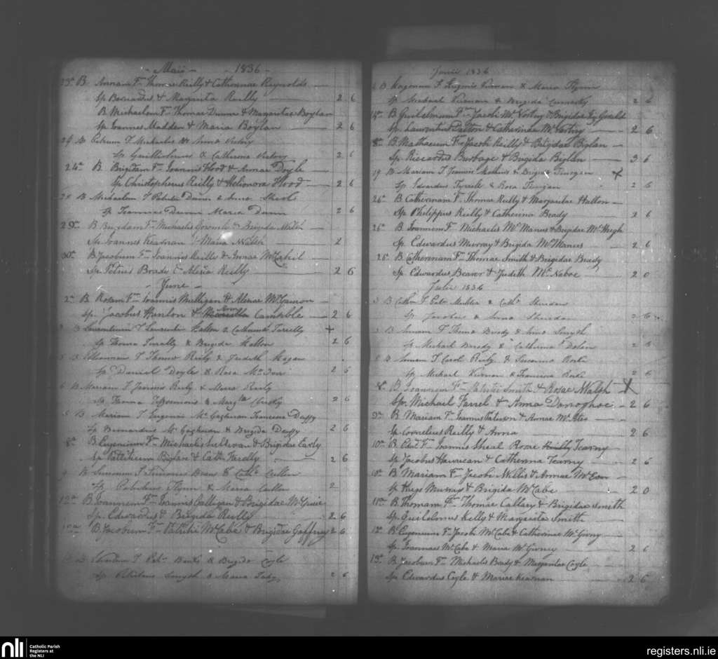 Scrabby; County of Cavan, Longford; Diocese of Ardagh. Baptisms, May 1836 to July 1836
