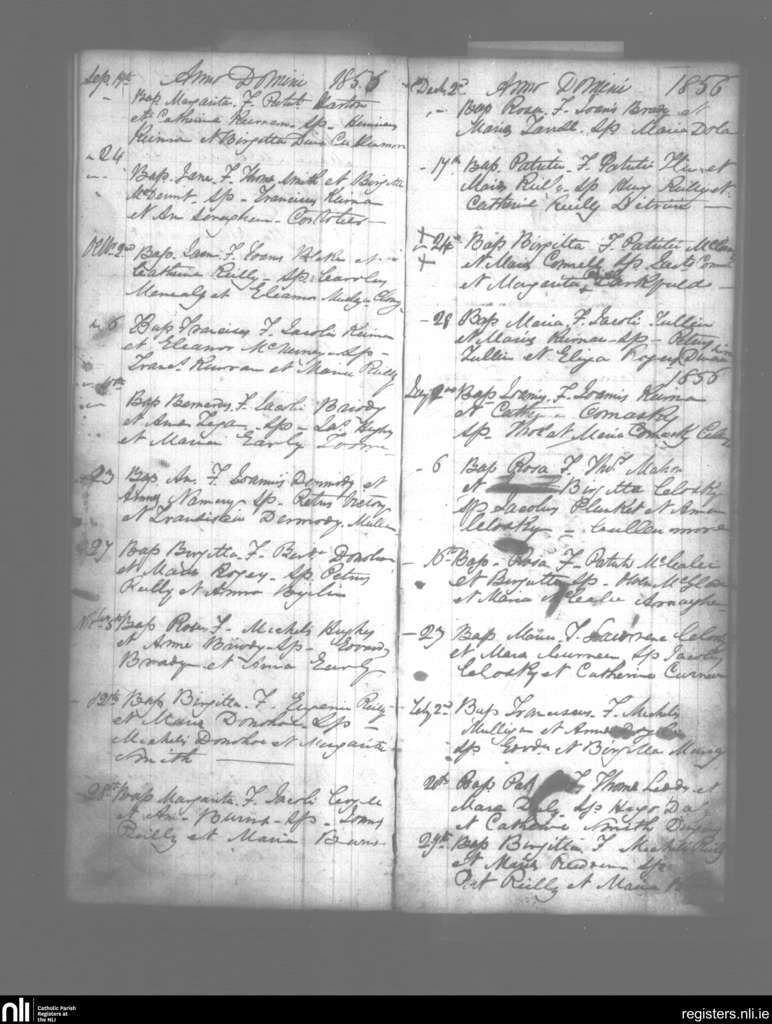 Scrabby; County of Cavan, Longford; Diocese of Ardagh. Baptisms, Sep. 1855 to Feb. 1856