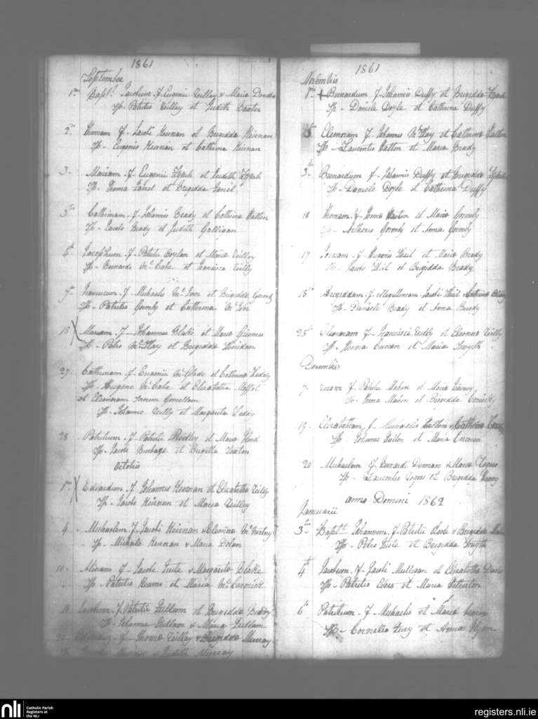 Scrabby; County of Cavan, Longford; Diocese of Ardagh. Baptisms, Sep. 1861 to Jan. 1862