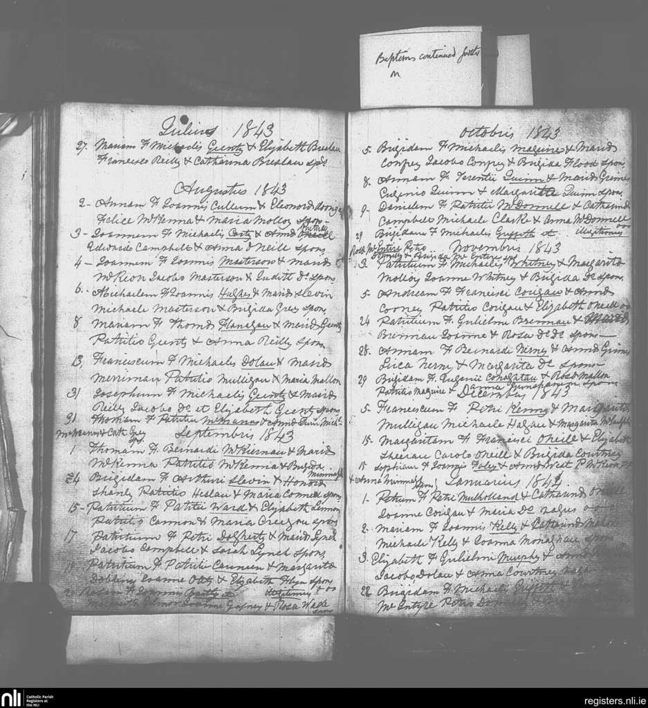 Drumlish; County of Longford; Diocese of Ardagh. Baptisms, July 1843 to Jan. 1844