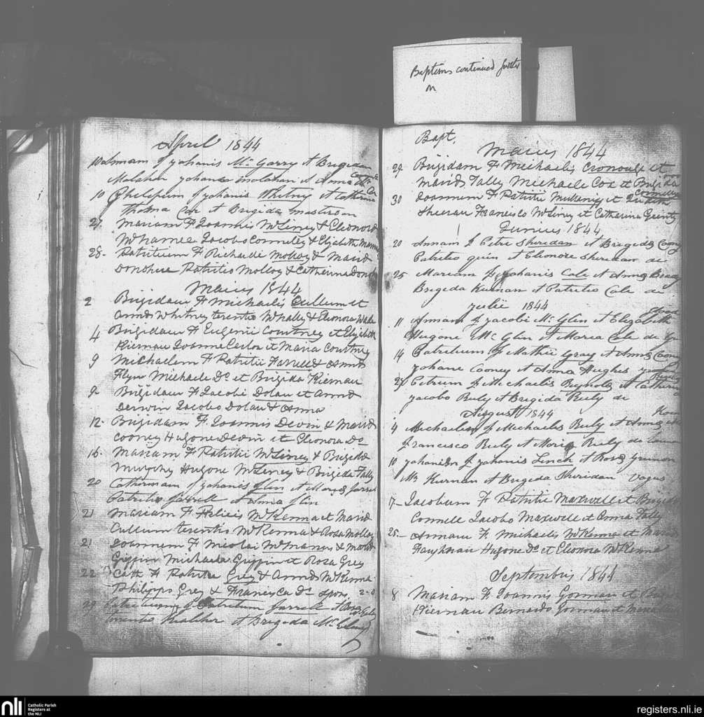 Drumlish; County of Longford; Diocese of Ardagh. Baptisms, Apr. 1844 to Sep. 1844