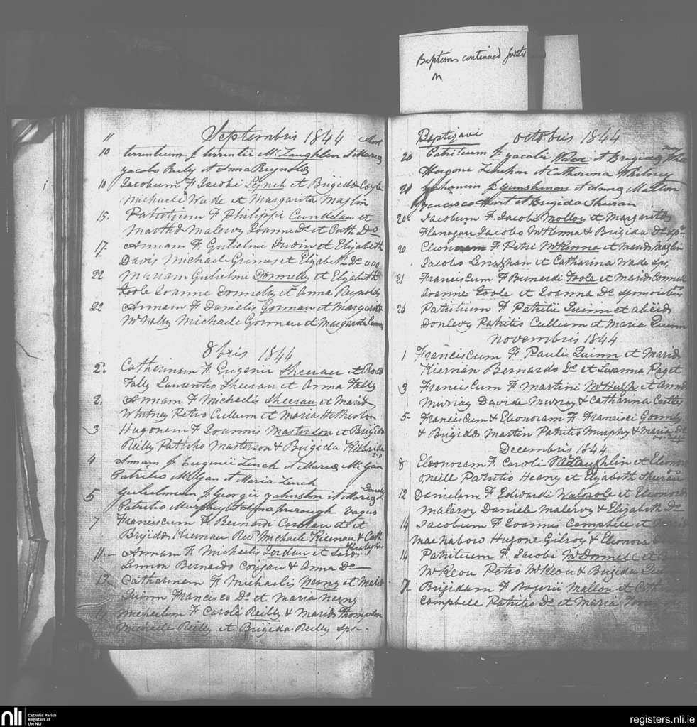 Drumlish; County of Longford; Diocese of Ardagh. Baptisms, Sep. 1844 to Dec. 1844