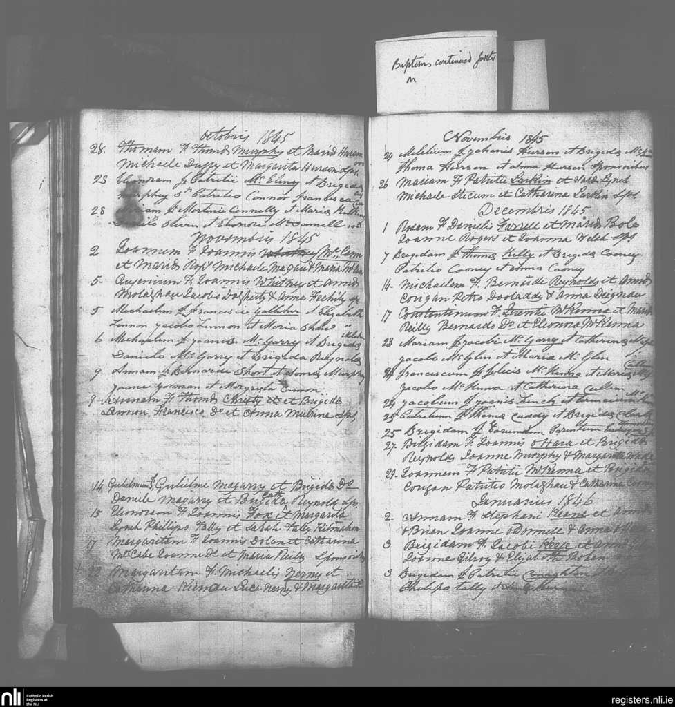 Drumlish; County of Longford; Diocese of Ardagh. Baptisms, Oct. 1845 to Jan. 1846