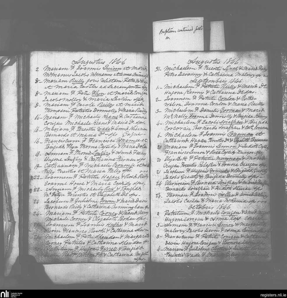 Drumlish; County of Longford; Diocese of Ardagh. Baptisms, Aug. 1846 to Oct. 1846