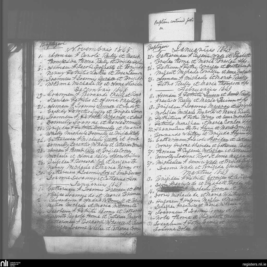 Drumlish; County of Longford; Diocese of Ardagh. Baptisms, Nov. 1848 to Mar. 1849