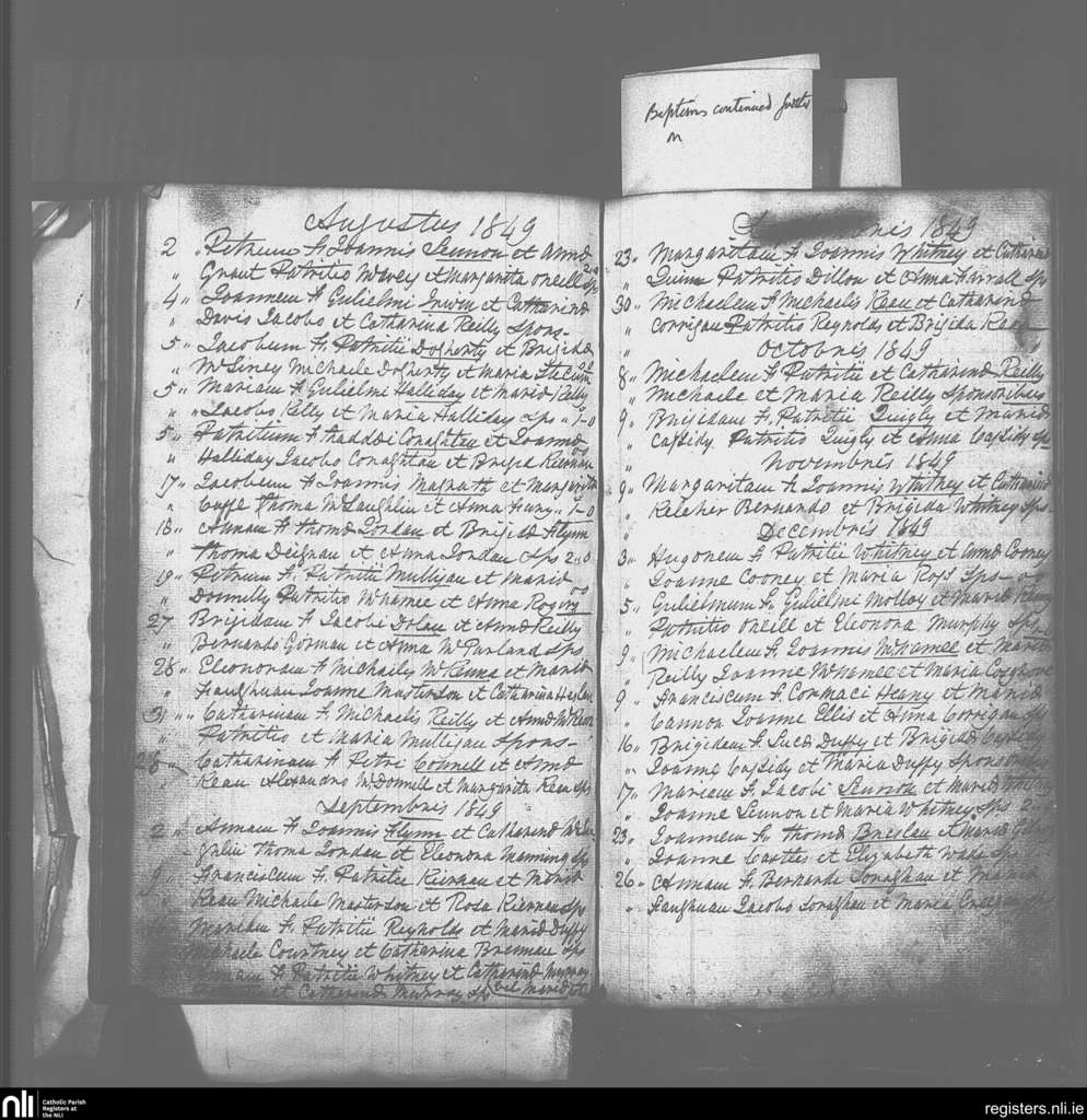 Drumlish; County of Longford; Diocese of Ardagh. Baptisms, Aug. 1849 to Dec. 1849
