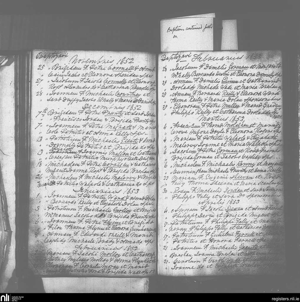 Drumlish; County of Longford; Diocese of Ardagh. Baptisms, Nov. 1852 to Apr. 1853