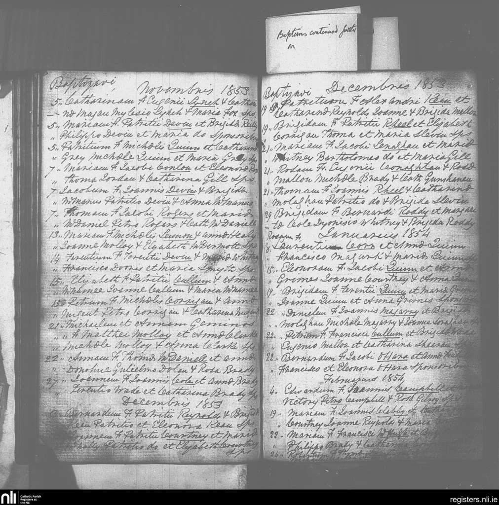 Drumlish; County of Longford; Diocese of Ardagh. Baptisms, Nov. 1853 to Feb. 1854