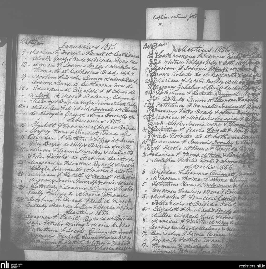 Drumlish; County of Longford; Diocese of Ardagh. Baptisms, Jan. 1856 to Apr. 1856