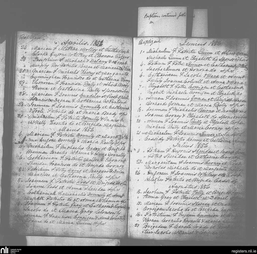 Drumlish; County of Longford; Diocese of Ardagh. Baptisms, Apr. 1856 to Aug. 1856