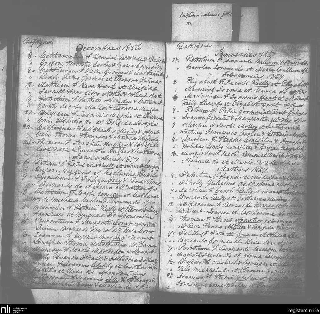 Drumlish; County of Longford; Diocese of Ardagh. Baptisms, Dec. 1856 to Mar. 1857