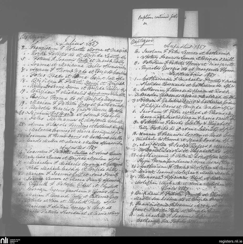 Drumlish; County of Longford; Diocese of Ardagh. Baptisms, July 1857 to Oct. 1857