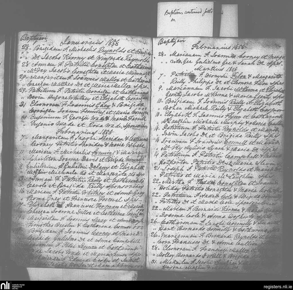 Drumlish; County of Longford; Diocese of Ardagh. Baptisms, Jan. 1858 to Mar. 1858