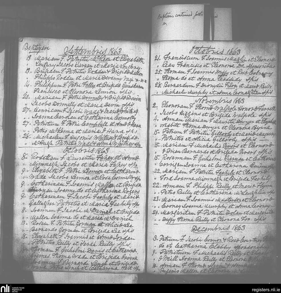 Drumlish; County of Longford; Diocese of Ardagh. Baptisms, Sep. 1863 to Dec. 1863