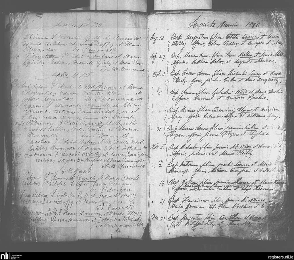 Drumlish; County of Longford; Diocese of Ardagh. Baptisms, June 1875 to Dec. 1876