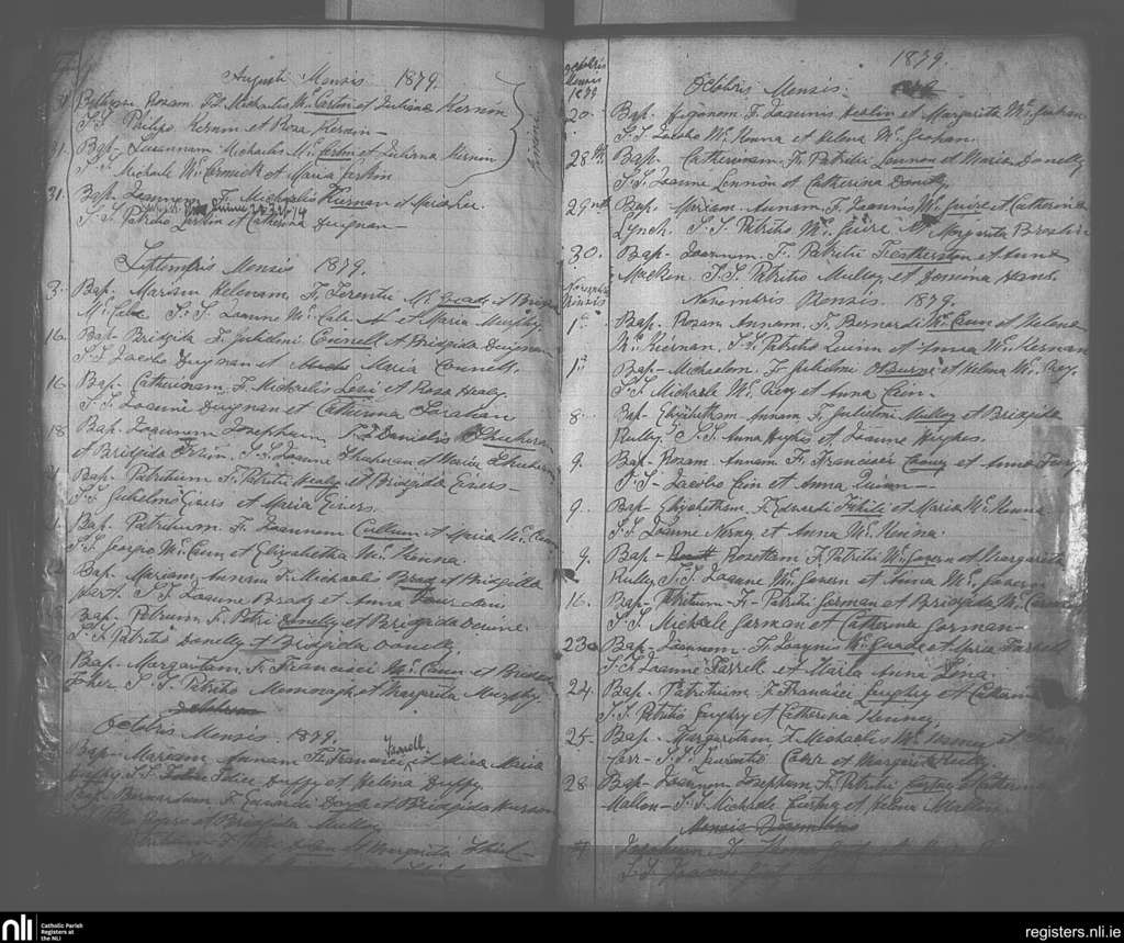 Drumlish; County of Longford; Diocese of Ardagh. Baptisms, Aug. 1879 to Dec. 1879