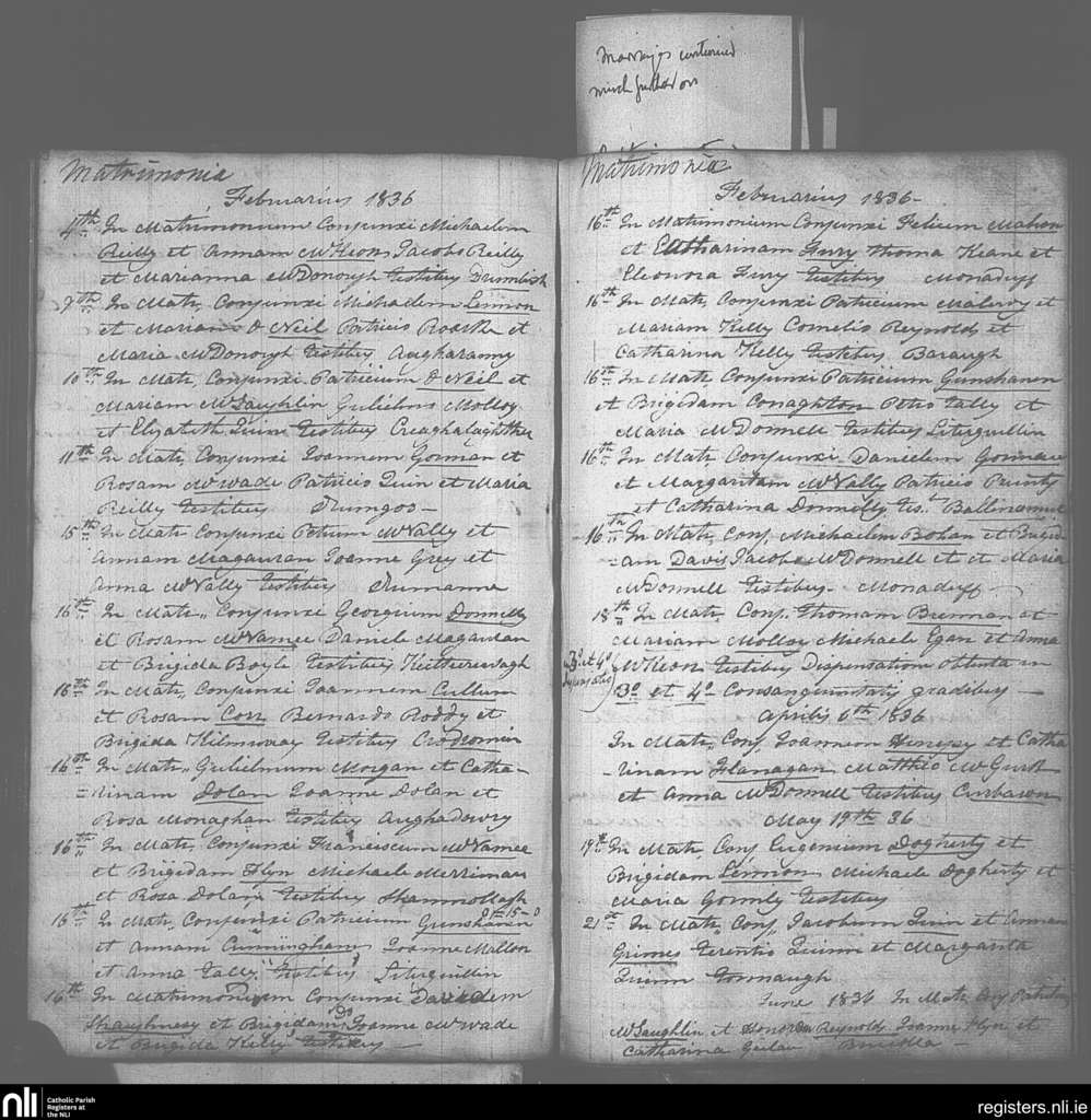Drumlish; County of Longford; Diocese of Ardagh. Marriages, Feb. 1836 to June 1836