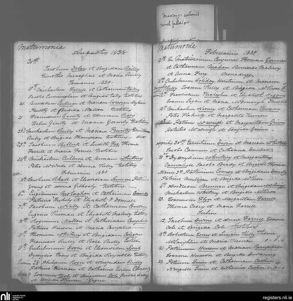 Drumlish; County of Longford; Diocese of Ardagh. Marriages, Aug. 1838 to July 1839