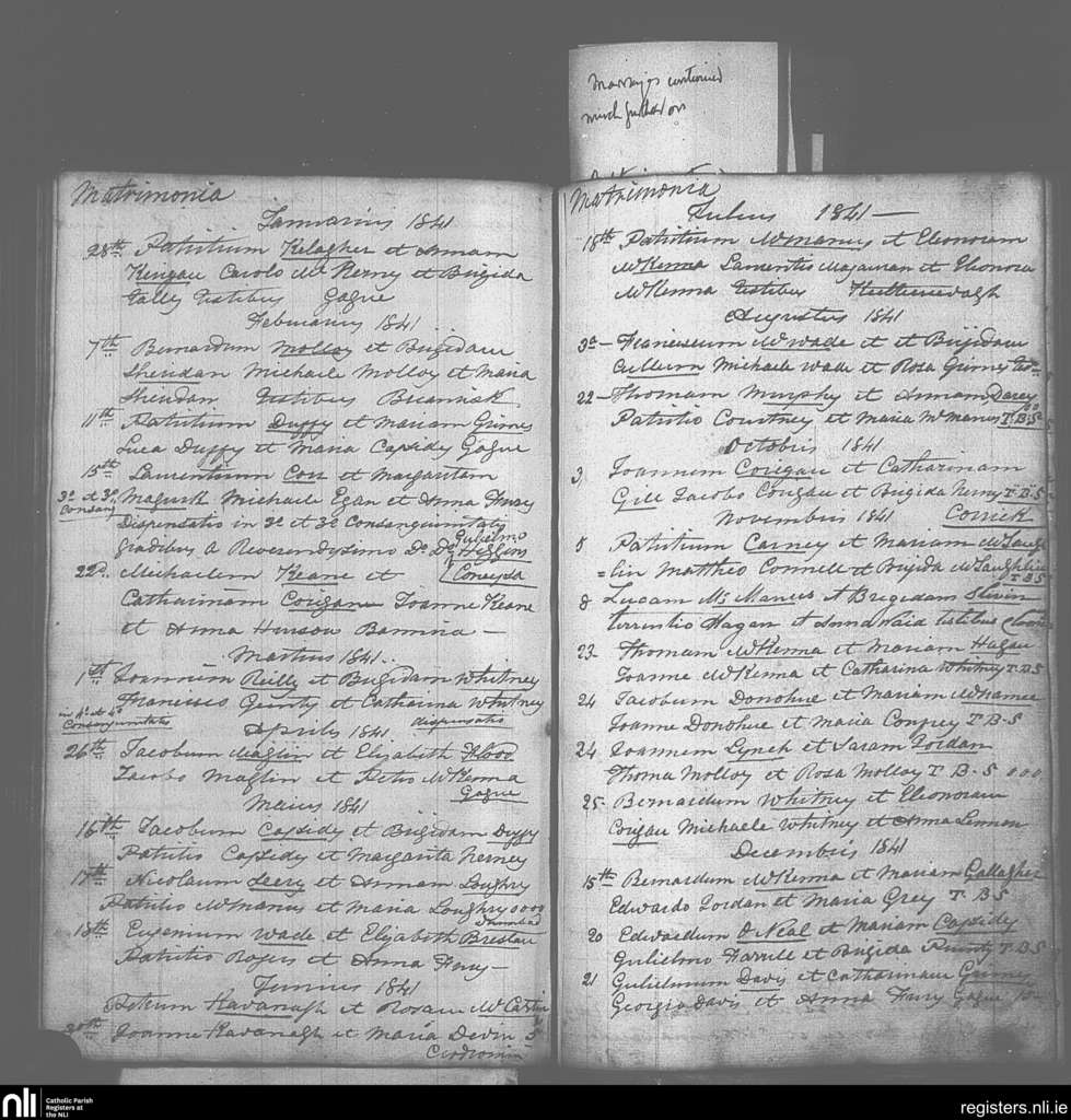 Drumlish; County of Longford; Diocese of Ardagh. Marriages, Jan. 1841 to Dec. 1841