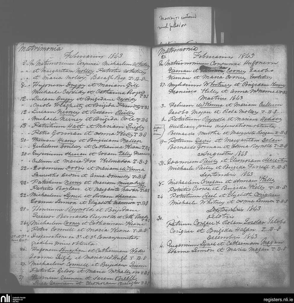 Drumlish; County of Longford; Diocese of Ardagh. Marriages, Feb. 1843 to Dec. 1843