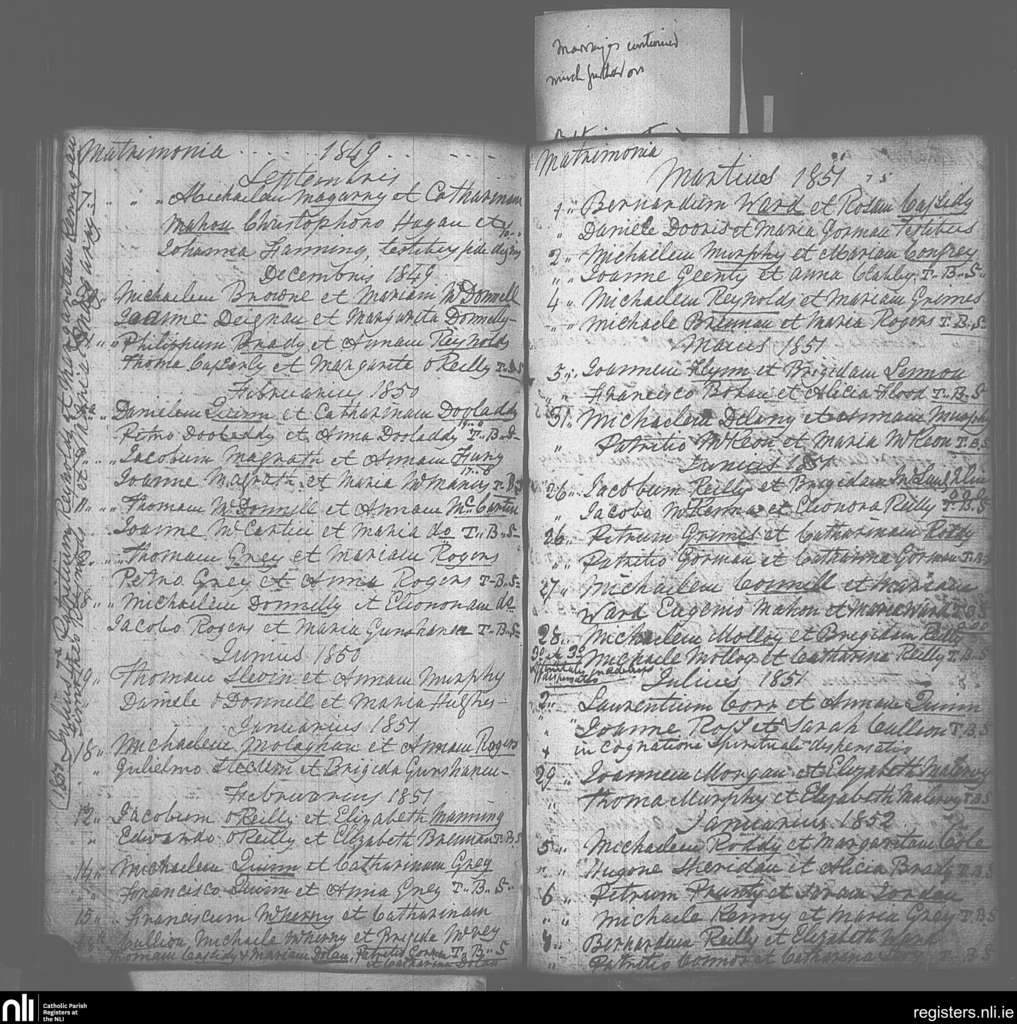 Drumlish; County of Longford; Diocese of Ardagh. Marriages, Sep. 1849 to Jan. 1852