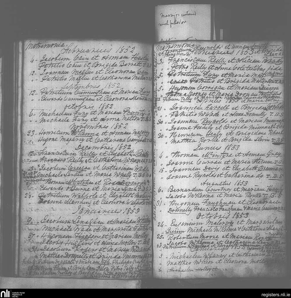 Drumlish; County of Longford; Diocese of Ardagh. Marriages, Feb. 1852 to Jan. 1854