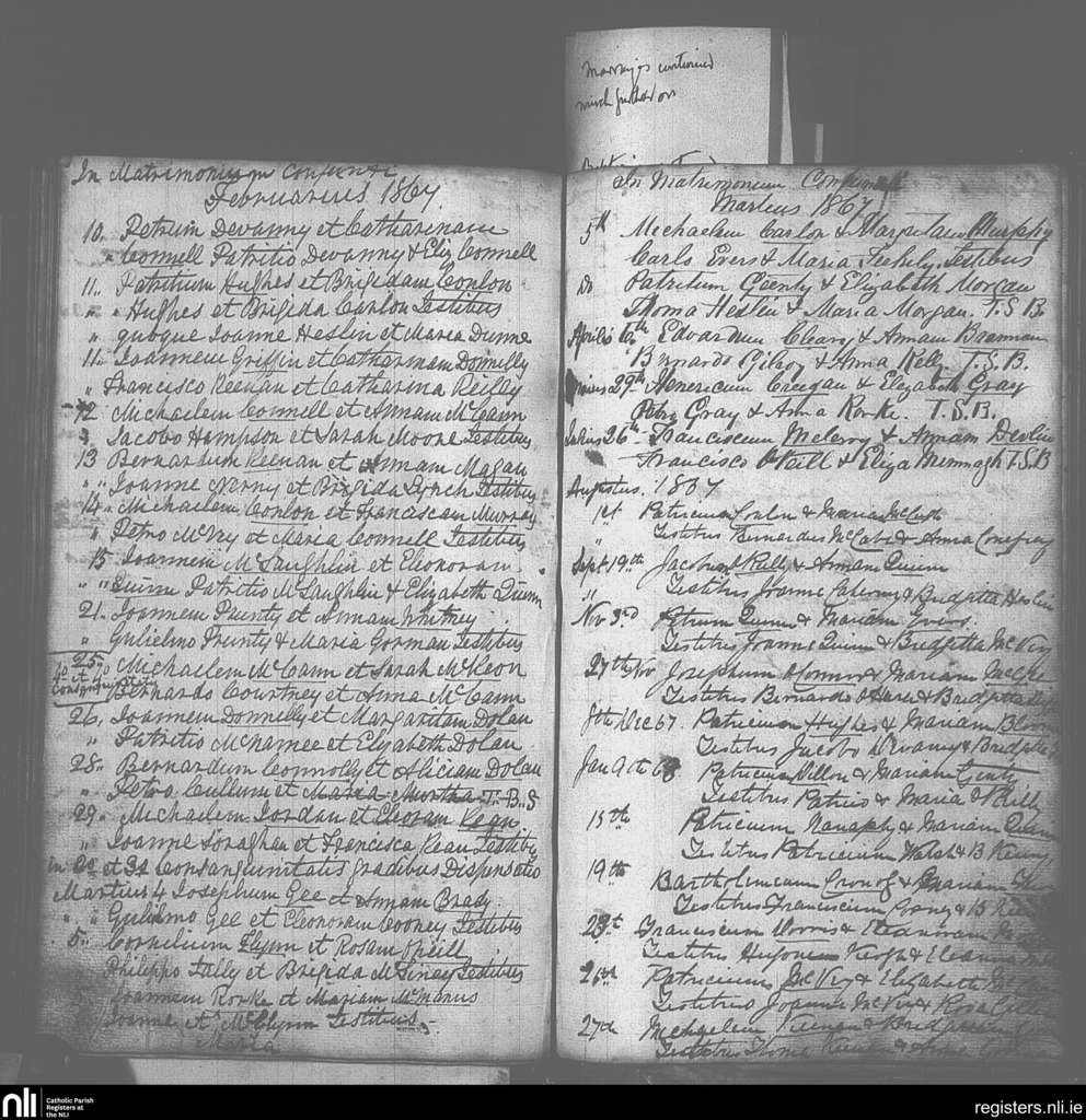 Drumlish; County of Longford; Diocese of Ardagh. Marriages, Feb. 1867 to Jan. 1868