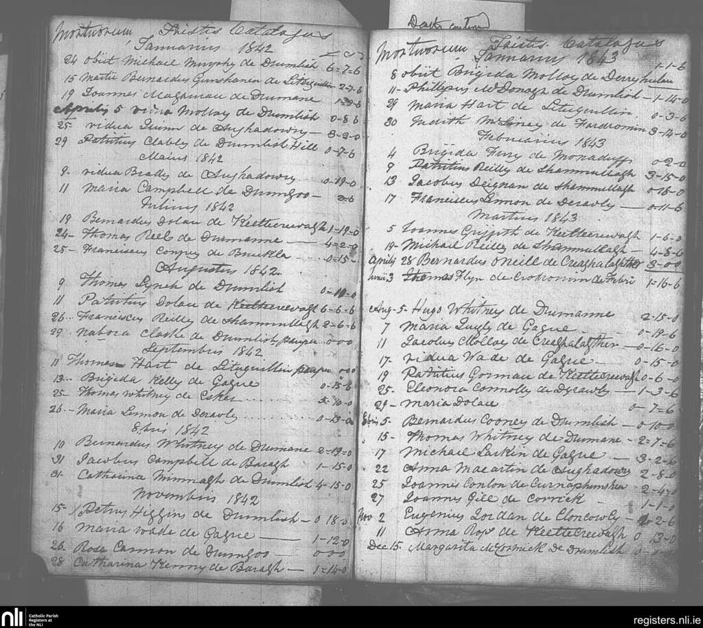 Drumlish; County of Longford; Diocese of Ardagh. Deaths, Jan. 1842 to Dec. 1843