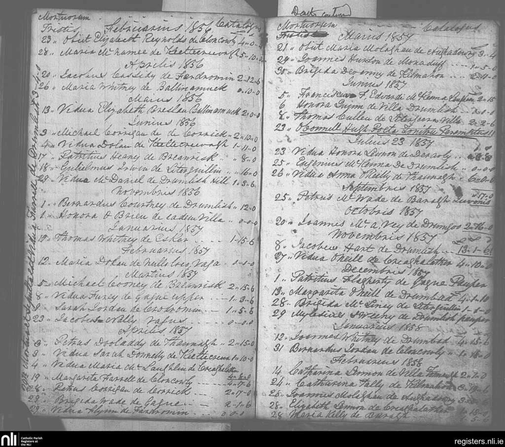 Drumlish; County of Longford; Diocese of Ardagh. Deaths, Feb. 1856 to Feb. 1858