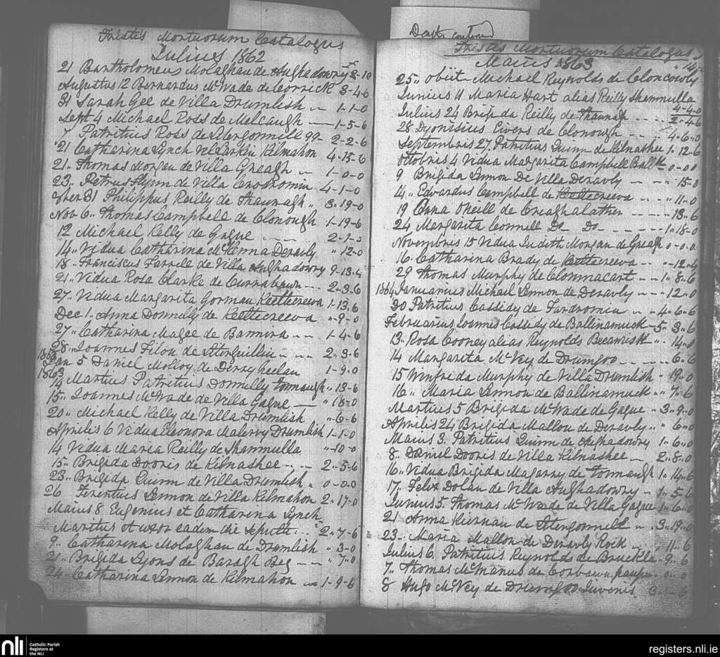 Drumlish; County of Longford; Diocese of Ardagh. Deaths, July 1862 to July 1864