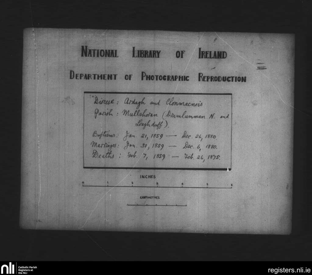 Mullahoran; County of Cavan; Diocese of Ardagh. Baptisms, Marriages, Deaths
