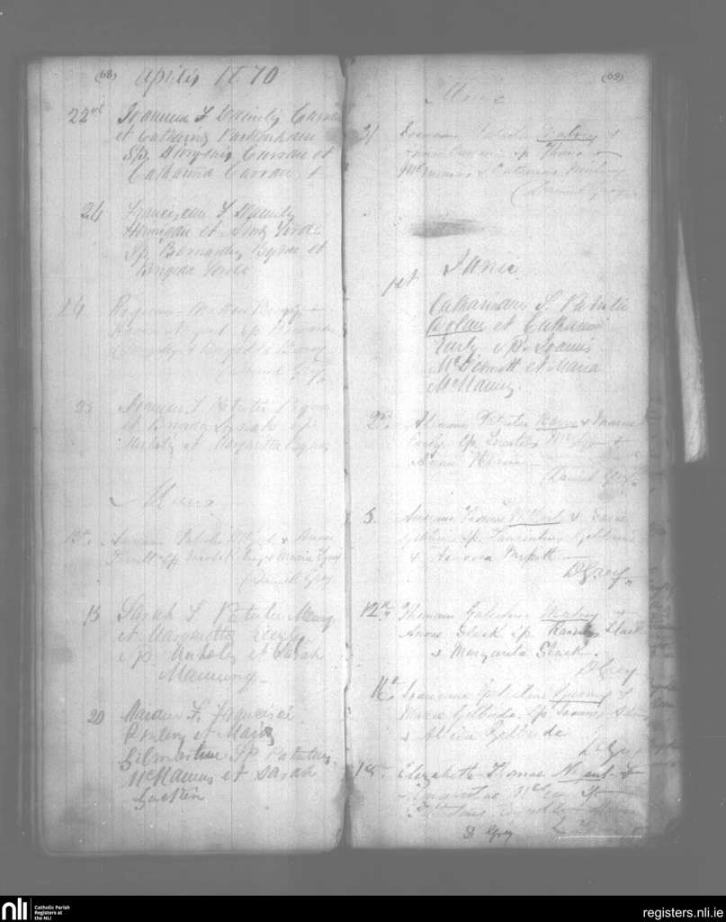 Murhan; County of Leitrim; Diocese of Ardagh. Baptisms, Apr. 1870 to June 1870
