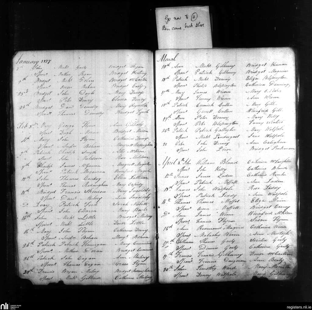 Fenagh; County of Leitrim; Diocese of Ardagh. Baptisms, Jan. 1827 to Apr. 1827