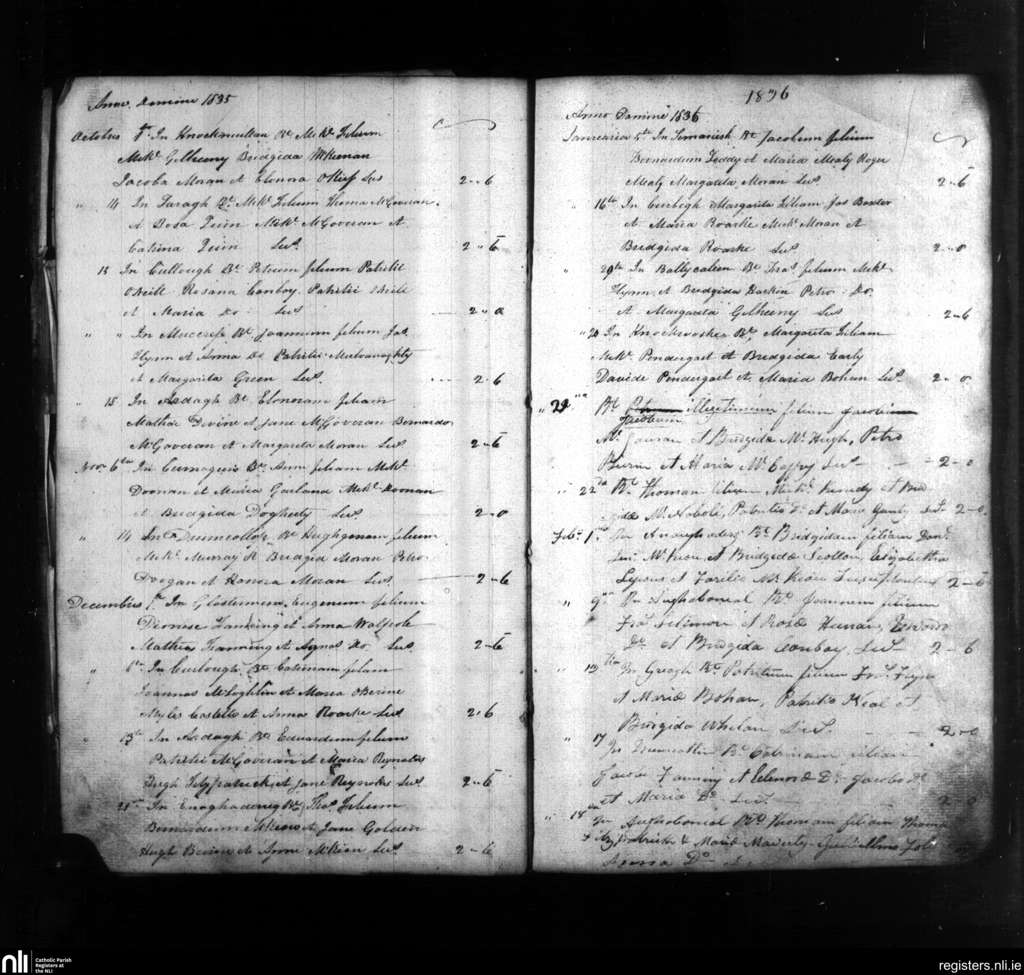 Fenagh; County of Leitrim; Diocese of Ardagh. Baptisms, Oct. 1835 to Feb. 1836