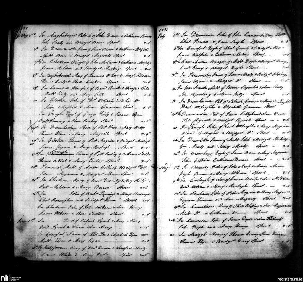 Fenagh; County of Leitrim; Diocese of Ardagh. Baptisms, May 1838 to Aug. 1838