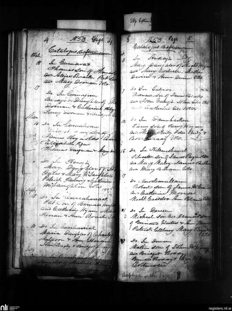 Fenagh; County of Leitrim; Diocese of Ardagh. Baptisms, Feb. 1853 to Oct. 1853